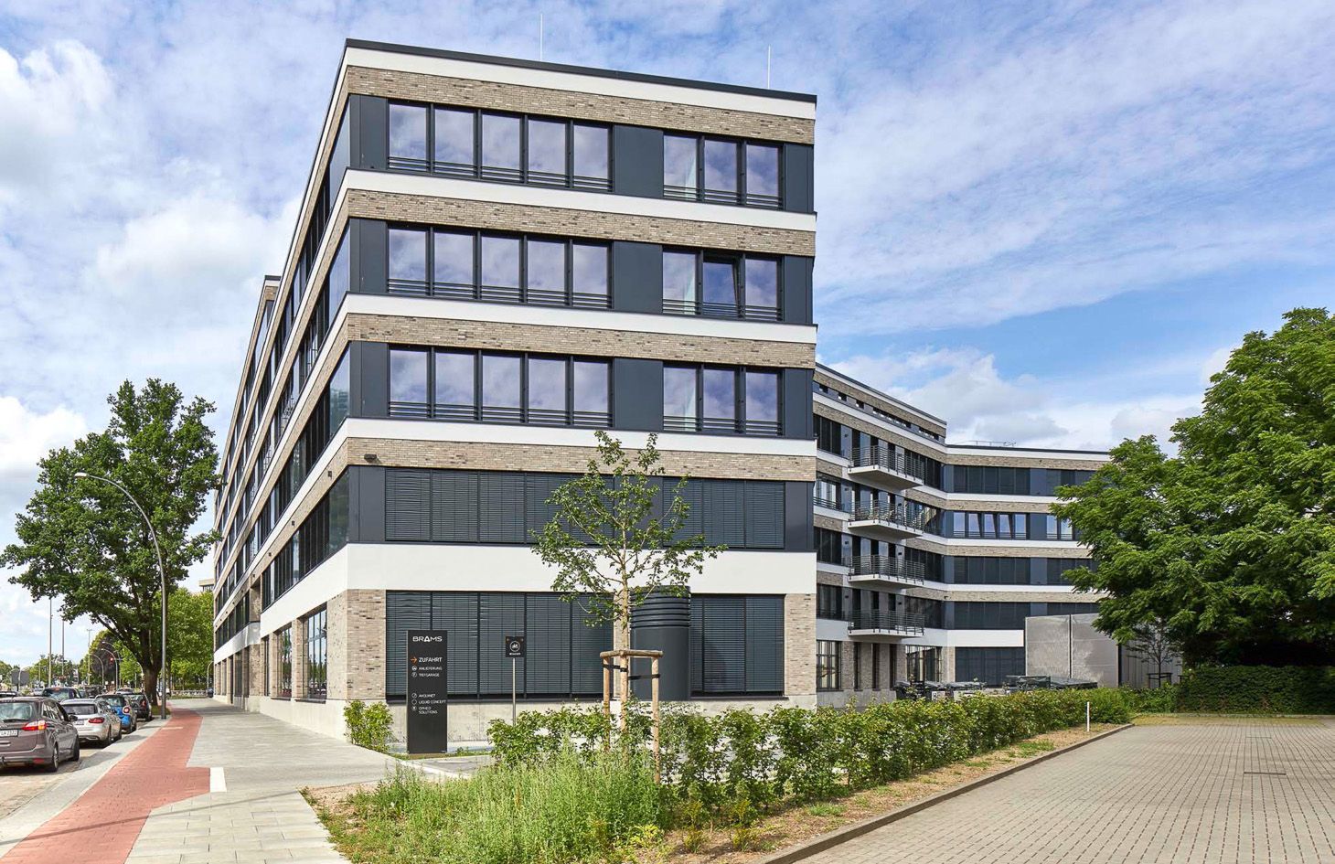 Auf der Grundstückspitze Werner-Otto-Straße / Bramfelder Chaussee bildet ein dreieckiger Baukörper mit einer obergeschossigen Bruttogrundfläche von ca. 21.000 m² und zwei Tiefgeschoss-Ebenen für 200 PKW einen markanten Punkt an einer der wichtigen Hamburger Ausfallstraßen.